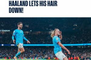 最終,曼城4-1大勝,德布勞內2射1傳,哈蘭德最后時刻披頭散發打入一球,曼城也以“哈蘭德放下頭發”為這一瞬間的標題。