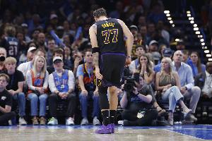 4月初,湖人官方宣布,東契奇因左腿筋二級拉傷無限期缺陣。