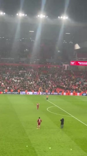球迷賽后高唱薩拉赫之歌,薩拉赫拍手向球迷致意。