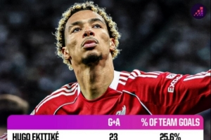 重大打擊,埃基蒂克本賽季各項賽事參與23球,利物浦隊內最高