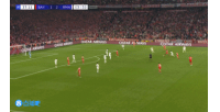 體育資訊04月16日訊 歐冠1/4決賽次回合,拜仁vs皇馬,第38分鐘,于帕梅卡諾直塞,凱恩打門,盧寧直接撲錯方向,拜仁總比分4-3領先!