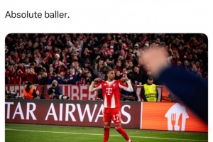 拜仁官推賽后曬出了奧利塞向球迷展示球衣的慶祝照,并配文寫道:絕對球星級表現(xiàn)。