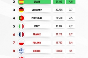 體育資訊4月16日訊 本賽季歐冠8強(qiáng)戰(zhàn)全部結(jié)束,隨著拜仁淘汰皇馬晉級(jí),德甲聯(lián)賽歐戰(zhàn)積分與西甲聯(lián)賽差距縮小。