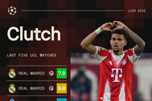 體育資訊4月16日訊 歐冠1/4決賽次回合比賽,路易斯·迪亞斯破門,拜仁主場(chǎng)4-3擊敗皇馬,總比分6-4晉級(jí)四強(qiáng)。