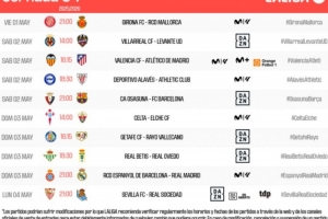 體育資訊4月16日訊 西甲第34輪比賽開球時間出爐,5月3日3點奧薩蘇納vs巴薩,5月4日3點西班牙人vs皇馬。
