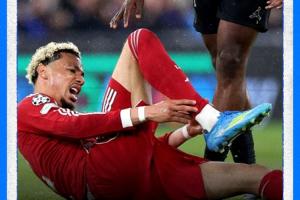 這位前鋒在周二安菲爾德對陣巴黎的歐冠比賽上半場因場地打滑摔倒,隨后被迫離場。
