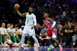 76人季后賽對陣凱爾特人,已經(jīng)連輸6輪系列賽,其中面對雙探花組合76人連輸3輪,分別為2017-18賽季東部半決賽1-4凱爾特人、2019-20賽季季后賽首輪0-4凱爾特人、2022-23賽季東部半決賽3-4凱爾特人。