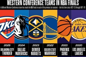 體育資訊4月17日訊 NBA官方今天分享了一個數據:過去六個賽季,每年都有不同的西部球隊闖入NBA總決賽。這是1972-73賽季至1977-78賽季以來首次出現如此局面。