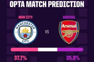 Opta的超級(jí)計(jì)算機(jī)認(rèn)為本場(chǎng)比賽難以預(yù)測(cè),在一萬次模擬中,曼城的勝率為37.7%,占據(jù)微弱優(yōu)勢(shì),阿森納的勝率為35.8%,而平局的概率為26.5%。