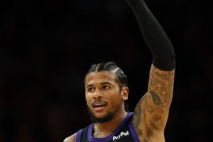 體育資訊4月18日訊 太陽111-96擊敗勇士,賽后,太陽后衛杰倫·格林接受媒體采訪,他本場打出生涯代表作,8個三分平附加賽球員單場歷史紀錄。