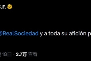 皇馬官方寫道:“祝賀皇家社會及其所有球迷奪得國王杯冠軍。”