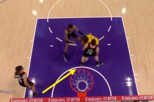 GIF-申京造艾頓進攻犯規 湖人挑戰