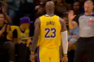GIF-詹姆斯背打強(qiáng)碾得分向裁判泰勒·福特抱怨 后者攤手