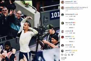 他也在賽后通過社媒曬出自己進球后的脫衣慶祝照,并配文:“我們絕不會停止戰斗??今天的觀眾太棒了!”