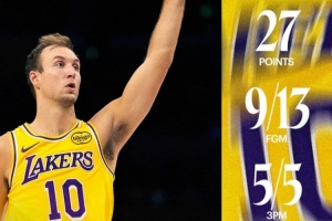 本場(chǎng)比賽肯納德13中9,三分5中5,罰球6中4砍下27分4籃板3助攻。