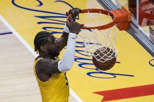 本場比賽,湖人內線艾頓表現不錯,進攻高效的同時籃板也上雙,對位申京絲毫不落下風,打了35分鐘,投籃10中8,罰球3中3,拿到19分11籃板2助攻1蓋帽,正負值+7。
