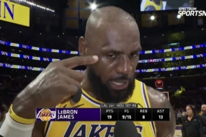 體育資訊4月19日訊 今日,湖人在季后賽首輪G1中107-98主場擊敗火箭,系列賽1-0領先。賽后,湖人球星詹姆斯接受了采訪。