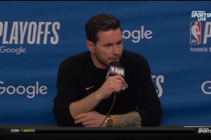 體育資訊4月19日訊 在今天結(jié)束的一場(chǎng)季后賽中,湖人以107-98戰(zhàn)勝火箭。賽后,湖人主帥JJ·雷迪克接受了媒體的采訪。以下是完整版采訪內(nèi)容。
