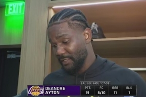 體育資訊4月19日訊 NBA季后賽G1,湖人在主場以107-98擊敗火箭。賽后,艾頓接受了記者采訪,以下為采訪全文。