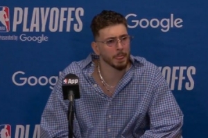 記者問:“這顯然是謝潑德第一次在季后賽中打這么長時間、承擔這樣的角色。在經歷了一場他投籃表現不如預期,而球隊又急需進攻火力卻無計可施的比賽后,你會對他說些什么?”