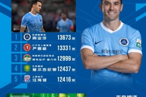 體育資訊4月19日訊 中超官方公布第6輪跑動距離榜,深圳新鵬城球員周定洋13673米第一,嚴鼎皓和阿布拉汗分居二三位。