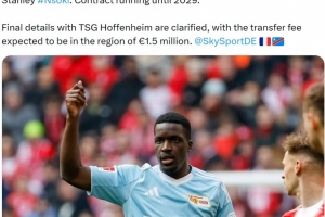 報道稱柏林聯合與霍芬海姆的交易最終細節已經敲定,轉會費預計約為150萬歐元。恩索基是一名27歲后衛,本賽季在德甲12次出場貢獻1球2助攻。