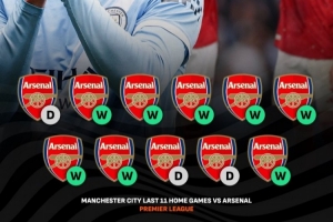 據livescore數據統計,曼城主場對陣阿森納已連續11場8勝3平保持不敗,槍手始終未能在伊蒂哈德球場取勝。