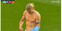 比賽第67分鐘,哈蘭德在拼搶中緊身衣被加布里埃爾扯出,隨后他脫下緊身衣直接送給了場邊的球迷。