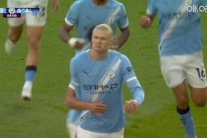 比賽第65分鐘,奧賴利橫敲,羅德里中路搶點被因卡皮耶干擾,哈蘭德后點側身凌空包抄破門!曼城2-1領先阿森納!