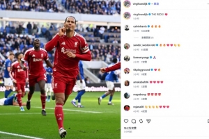 同城德比客場頭槌讀秒絕殺!范戴克社媒曬慶祝照:紅軍!
