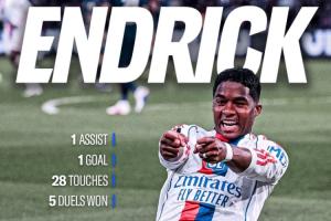 恩德里克上一次為里昂進(jìn)球還要追溯到一個月前,他在歐聯(lián)杯1/8決賽首回合中為球隊打進(jìn)絕平進(jìn)球。此后,恩德里克的進(jìn)球狀態(tài)不佳,被法國和西班牙媒體所詬病。如今他在對陣法甲榜首巴黎的比賽中再次證明了自己的實(shí)力。