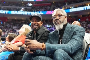 本場(chǎng)比賽,活塞名宿漢密爾頓和本·華萊士也在現(xiàn)場(chǎng)看球。