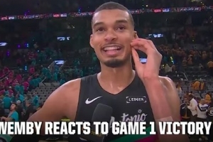 體育資訊4月20日訊 NBA季后賽首輪,馬刺主場111比98擊敗開拓者,大比分1比0領先。賽后文班亞馬在場邊及發布會接受了采訪,以下為采訪全文。