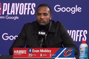 體育資訊4月21日訊 NBA季后賽,騎士115-105力克猛龍,大比分2-0領先。賽后莫布里接受了媒體采訪,以下為采訪全文。