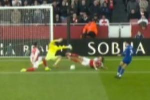 比賽第17分鐘,恩迪亞耶的傳中被拉亞撲了一下,麥克尼爾門前的近距離補射被已經倒地的卡拉菲奧里用一個非常奇怪的姿勢極限封堵了出來!