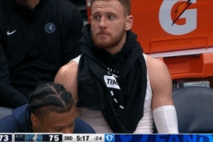 GIF-迪文岑佐坐在替補(bǔ)席沒球衣穿 簡單套個(gè)“圍脖”