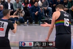 GIF-約基奇推人被吹進攻犯規,他瘋狂抱怨被吹T