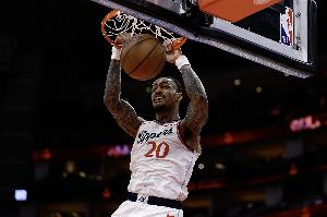 本場(chǎng)比賽約翰·科林斯出戰(zhàn)24分鐘11投6中,三分3中0,罰球6中6砍下18分7籃板2助攻1蓋帽。