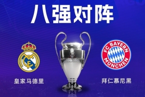 體育資訊3月19日訊 歐冠1/4決賽對陣出爐,拜仁皇馬將會交手。