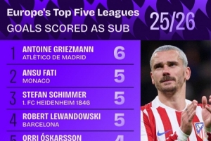 體育資訊3月20日訊 本賽季,馬競老將格列茲曼依然保持著良好的狀態(tài),盡管西蒙尼主要將他作為替補使用。本賽季迄今為止,格列茲曼在西甲中替補登場已打進(jìn)6球,位居五大聯(lián)賽所有球員之首。