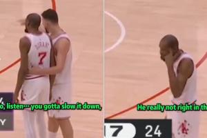 GIF-申京指點(diǎn)杜蘭特,杜蘭特隨后攤手+搖頭,還對(duì)場(chǎng)邊方向抱怨地指了指自己的頭