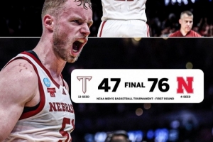 體育資訊3月20日訊 NCAA瘋?cè)纵啠瑑?nèi)布拉斯加大學76-47擊敗特洛伊大學晉級。